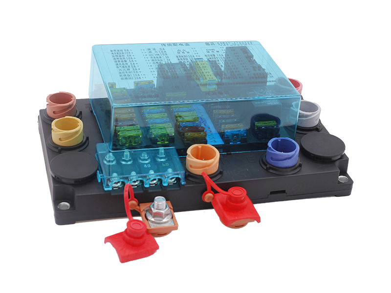 ■ 下部電源輸入端絕緣防護(hù),采用我公司絕緣技術(shù);分3路輸入,常電、ACC檔、ON檔    每一路都采用銅排輸入,與國(guó)內(nèi)其他公司傳統(tǒng)的內(nèi)部保險(xiǎn)端螺柱鏈接相比,具有連接方便;安全性/可靠性更高的優(yōu)點(diǎn)。